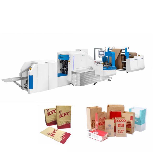 A: This machine is mainly to make square bottom kraft paper bag, bag size adjustable.  Besides, machine accept customized function, like 2layers, die cut punch, window, online printing, etc.